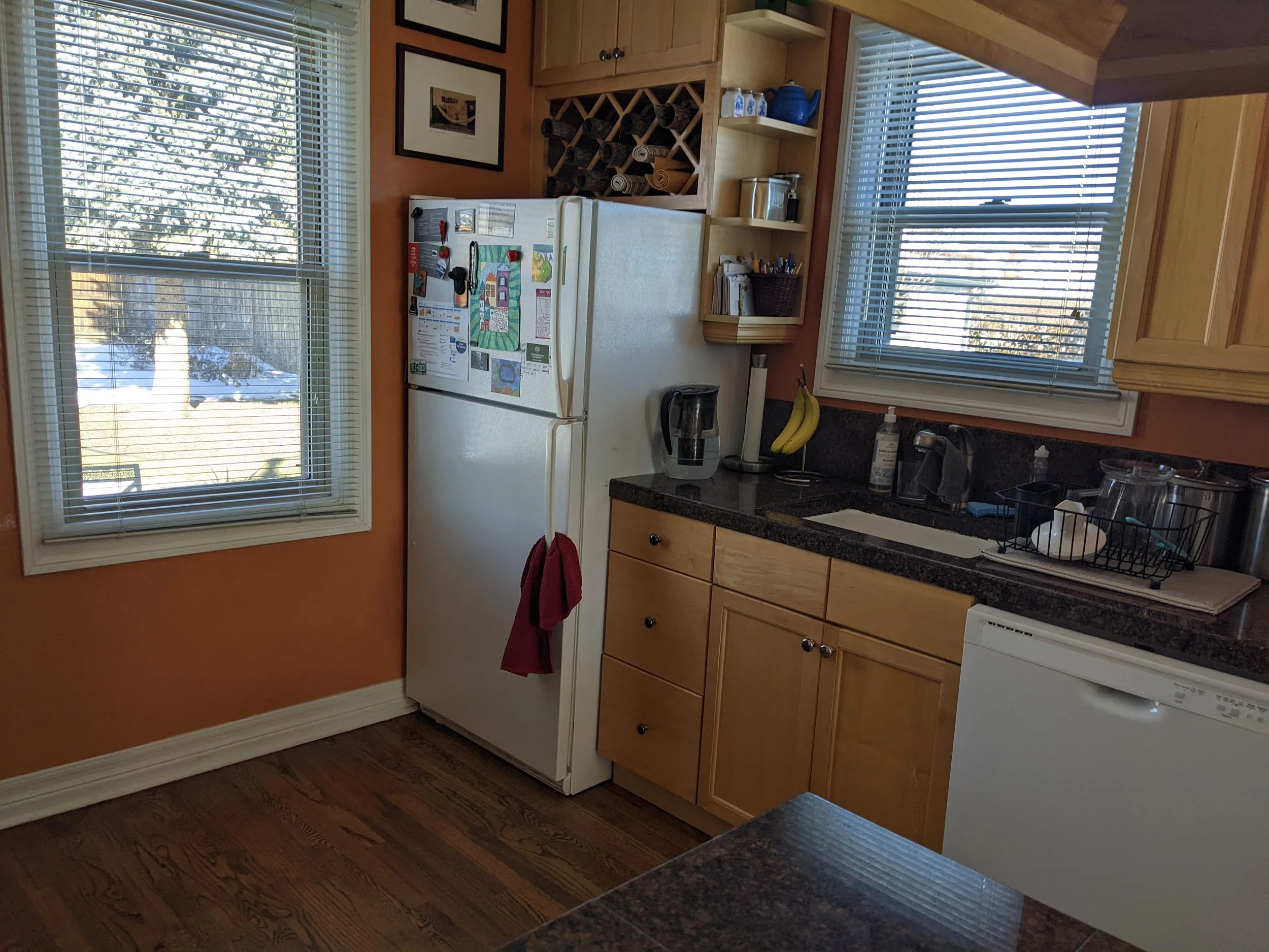 The old kitchen, as was typical back then, was only 9x11 feet, and was bisected from traffic from the house to the basement stairs and backyard. Two small windows gave a peek of the side and back yard.